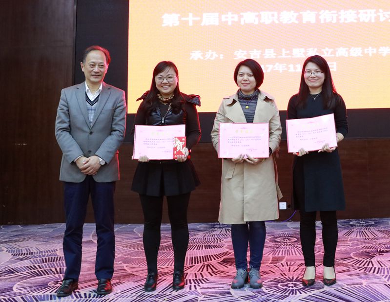 我院招就处处长方明对各合作中职学校近三年的合作情况,升学率、报到率等进行通报。会议对升学率排名前三的杭州开元商贸职校国际商务专业、上虞职教中心电子商务专业、浙江信息工程学校计算机应用专业和我院国际经济与贸易、计算机应用技术、电子商务三个专业教研室进行表彰。