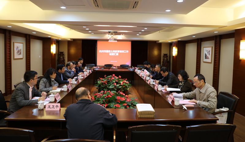 11月15日,按照《关于对杭州市退役士兵职业技能教育承训机构进行考核验收的通知》要求,杭州市民政局副局长蒋银泉,杭州市民政局优抚处处长李向东,杭州市教育局成人教育处处长吴作为,杭州市就业局专业技能人员交流服务处处长叶金香,杭州警备区蓝炜民,杭州市民政局刘吉坤、徐谷秋艳来校,对我院杭州市退役士兵教育培训工作进行全面检查。