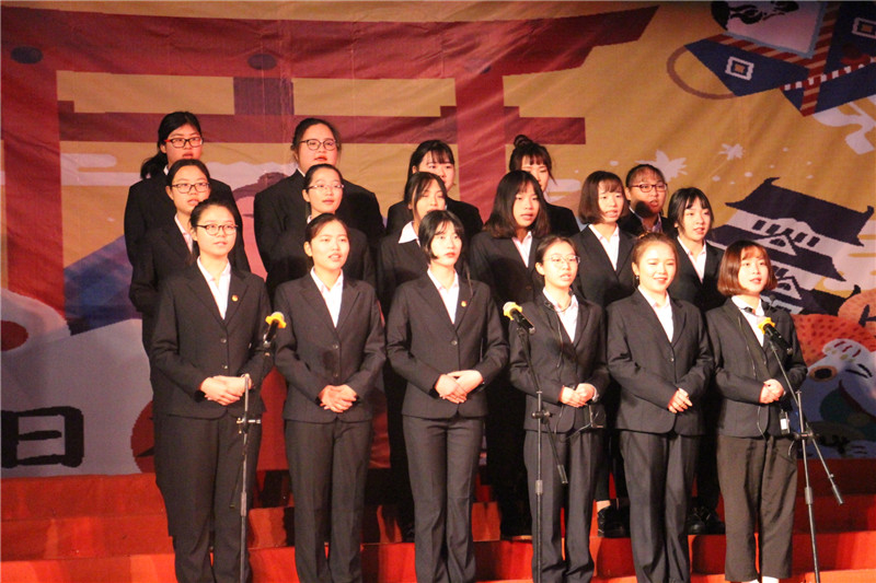 下午,日语文化节文艺演出在体育馆举行。我院日语专业五年一贯制班的同学们为大家表演了日语歌曲合唱《语言的魔力》。优美欢快的旋律,精湛扎实的唱功以及朝气蓬勃的精神面貌,让人眼前一亮,引得全场掌声雷动。整场节目类型多样,包括独舞、歌曲、日语情景剧表演等。来自安吉上墅私立高级中学的葛璐璐同学演唱的歌曲《走向未来》让在座同学记忆深刻,甜美的歌声在馆内萦绕。游园环节中剑玉、阵取等平时只在日剧和动漫中才出现的游戏吸引了同学们踊跃参加,馆内气氛热情高昂,其乐融融。