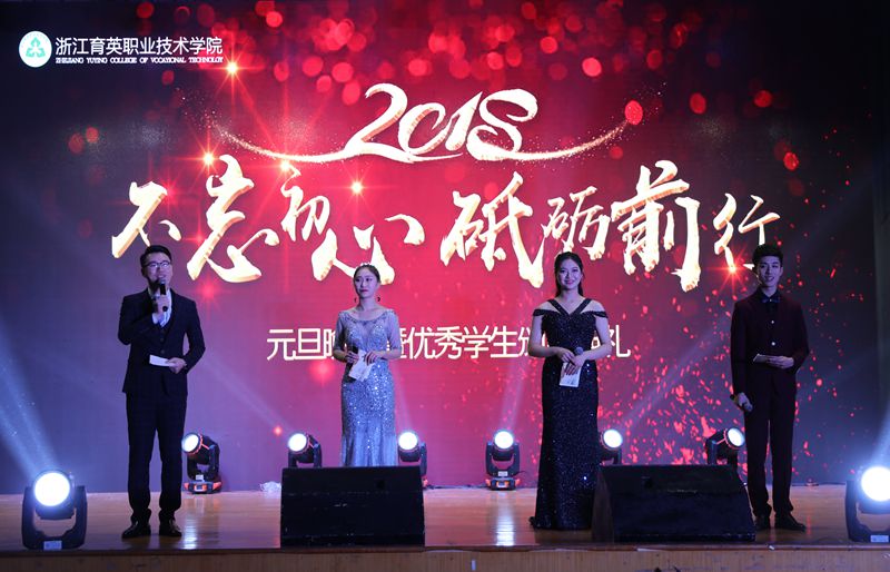 盛健院长致新年贺词。他说,刚刚过去的2017年,党的十九大胜利召开,学院也是收获满满。学院获得了全国无偿献血促进奖单位奖和浙江省高校无偿献血爱心集体。学院的专业建设、课程建设、师资队伍建设都稳步推进。全院师生共创了“育英好课堂”,评选了育英的“金星”、“银星”教师。同学们各种大赛中更是取得了骄人的成绩,在全省“挑战杯”创新创业竞赛、全省大学生职业生涯规划与创业大赛、全国商业精英挑战赛创新创业总决赛都取得了良好的成绩;学院体育运动队更是成绩骄人,在第十七届全国大学生田径锦标获得丙组总团体第一、女子团体第一,在浙江省大学生篮球联赛获得男篮乙A组冠军等等。学院的所有荣誉和成绩都离不开广大同学的支持和信任。当初你们选择育英就代表一种信任,它更是一种力量,要求我们把工作做得更好,使各位在这个校园里更好更快乐的成长,同时也让学院发展得更好!今天晚会的主题是“不忘初心 砥砺前行”,让我们各位同学牢记使命,奋斗前行。牢记自己的使命,为自己的梦想和民族的梦想而不懈奋斗。