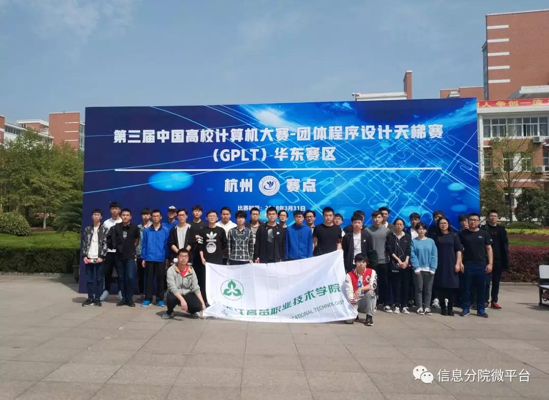 在3月31日于杭州电子科技大学举行的第三届中国高校计算机大赛团体程序设计天梯赛中,我院代表队以2289分的总成绩位列高职高专组第一名,荣获本次比赛特等奖!