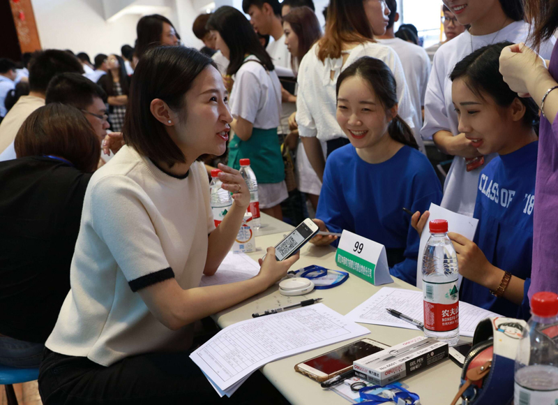 据统计,参加招聘会的2019届毕业学生2300余人,投递个人简历1608份,经过现场面试,达成初步意向有503人。本次招聘单位提供的岗位都属于现代服务业,与我院5大专业群类别基本吻合,受到学生欢迎。