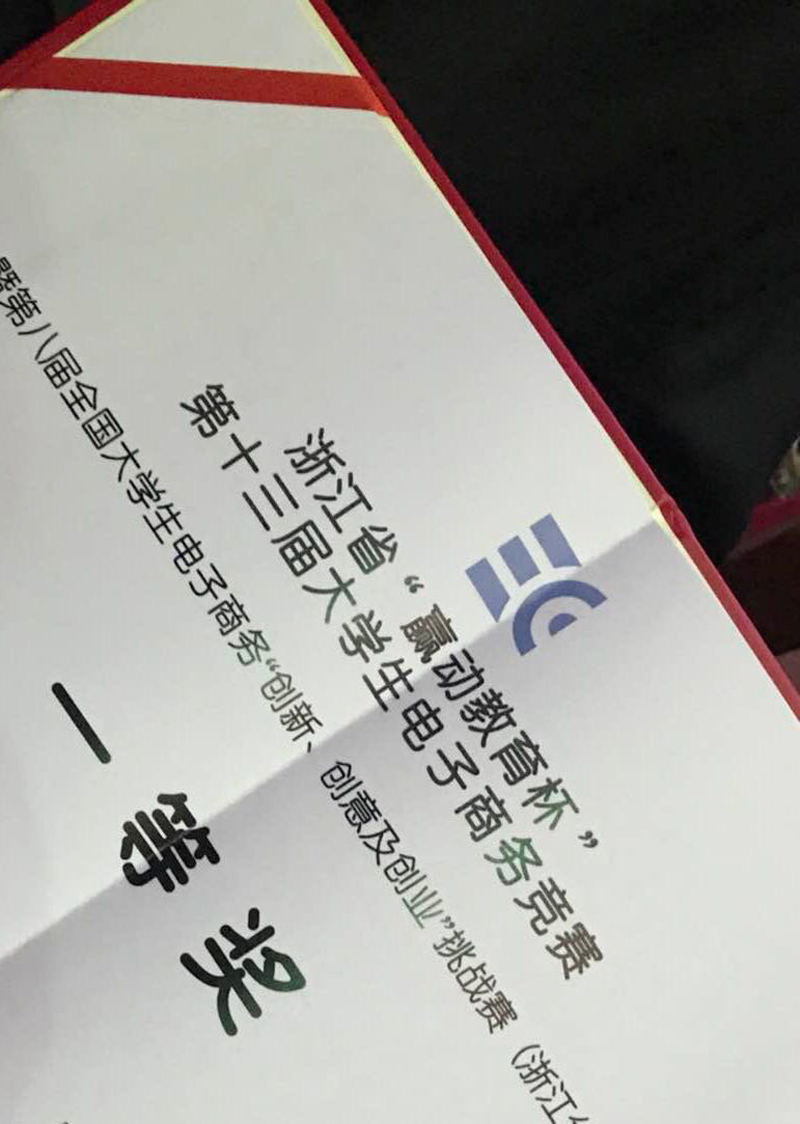 6月1日至6月2日,浙江省“赢动教育杯”第十三届大学生电子商务竞赛决赛暨第八届全国大学生电子商务“创新、创意及创业”挑战赛在杭州举行。我院电子商务专业学生韩雪、陈莲、宋鹏颖、刘璐瑶、朱珊珊、王松、陈珏任共同完成的《美食社交App大嘴》项目获一等奖。指导老师为孙斌、吴有权、方丽珍。