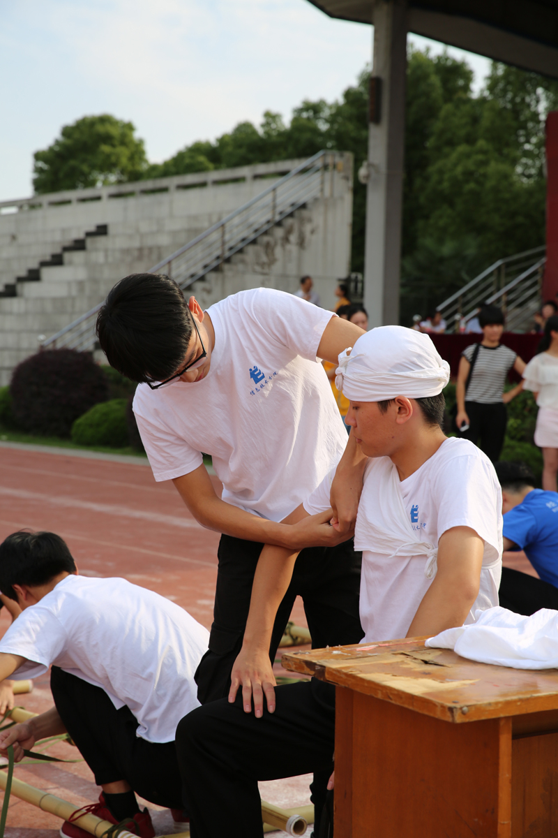 每年3-5月,都要对全院新生进行卫生健康救护知识教育,同时传授止血、包扎、固定、担架制作及搬运四项基本救护技能。为提高卫生健康教育的实效性,学院每年举行全院卫生健康救护技能大赛。从2005年至今,已经连续举办14届。该项活动深受广大师生欢迎,受到了省市红十字会的好评。《浙江日报》曾经图文报道我院红十字健康救护比赛活动。此次参赛的330名队员动作娴熟、准确到位、操作快速,一切紧张而有序。