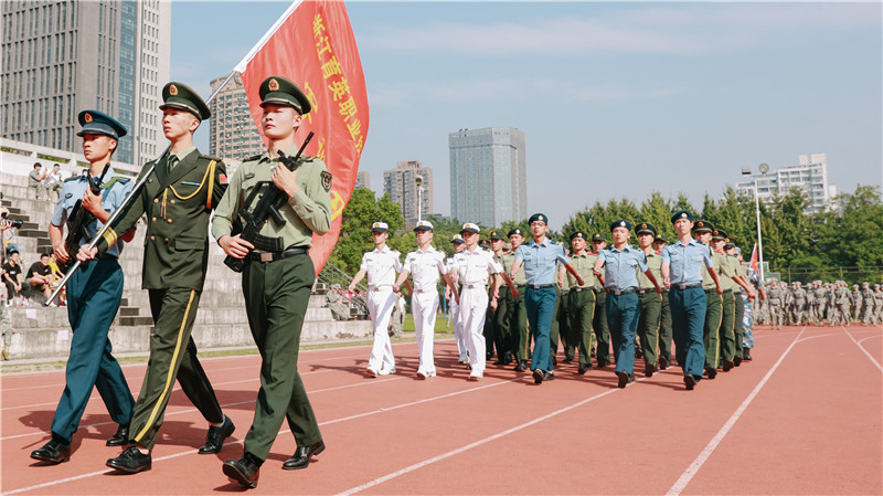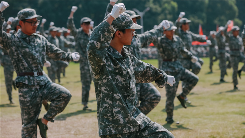 两周的训练,练就整齐的步伐,昂扬的斗志,阳光的脸庞。恰同学少年风华正茂! 党委副书记、副院长谢鑫作军训总结,希望在军训中增强的国防观念,激发的爱国热情和革命英雄主义精神,学习的基本的军事知识和技能,能一直伴随你们;希望军训中磨练的意志、培养的吃苦耐劳的精神,能一直伴随着你们;希望军训中增强的组织纪律观念,集体荣誉感能一直秉持下去;希望军训中严格遵守纪律、一切行动听指挥、整理内务一丝不苟,日常行为规范、文明,同学之间互学、互帮、互比、互助,能够一直发扬下去。