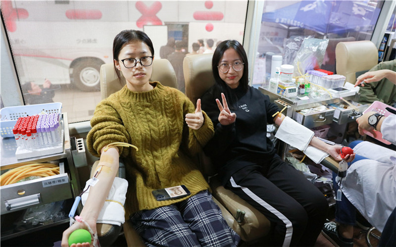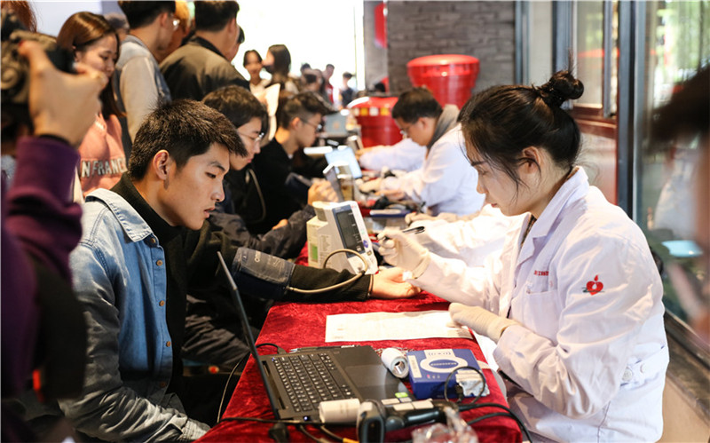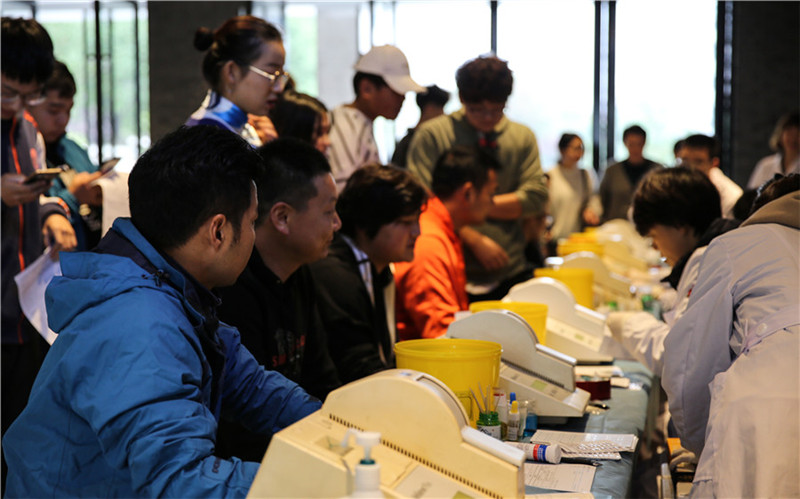 献血活动开始前,同学们就早已排起了等待的队伍,采集登记处很快便排成了长龙。在医护人员和青年志愿者的协助下,填表、化验、等候、抽血、休息,一切工作都有条不紊。