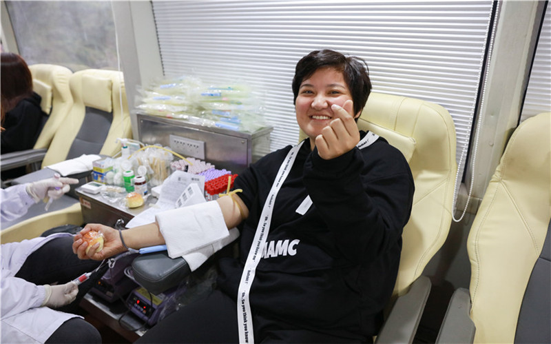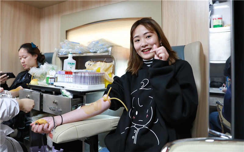 现场还有不少穿着空乘制服的同学们,前来排队献血。这不仅是一种爱的奉献,也是对其职业生涯的一种见证。2018空乘专业的学生冯紫薇就是其中之一,这是她第一次走上献血车,成功献血300毫升。学院田径队27名队员集体参与献血,共计献血5400毫升。退伍的18名学生也积极参与献血,共计献血6900毫升。