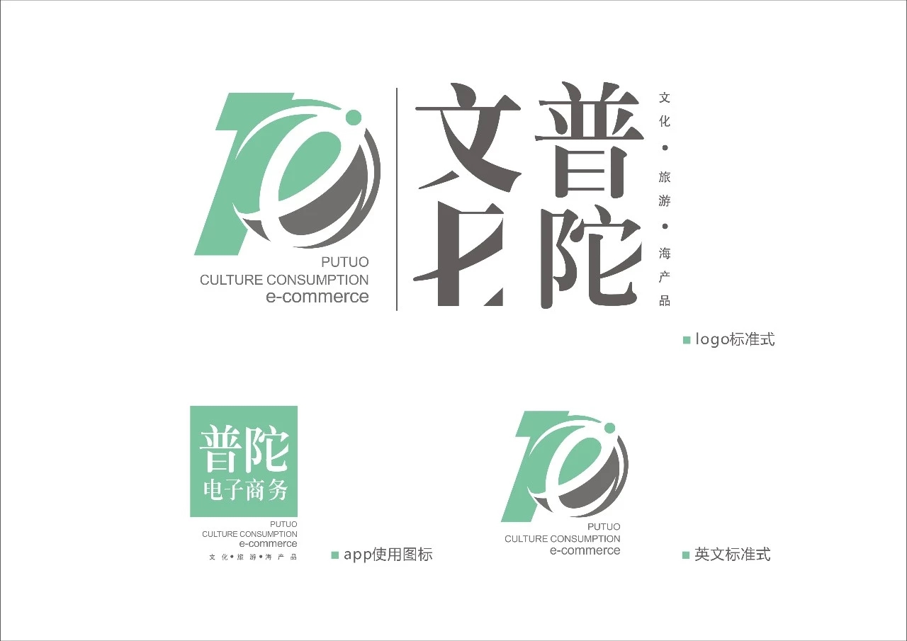 标志整体造型以字母"P”和“T"为基本造型,象征标志的品牌地域普陀。字母“P"圆形中用鱼变形成”文“字造型突出品牌的文化内涵和佛教特色,“文”字造型又进行了图形创意整体像一只海龟,突出了海产品及旅游特色。“文”字的负形部分又可以呈现出字母“e”,突出了品牌的主营业务-电子商务。