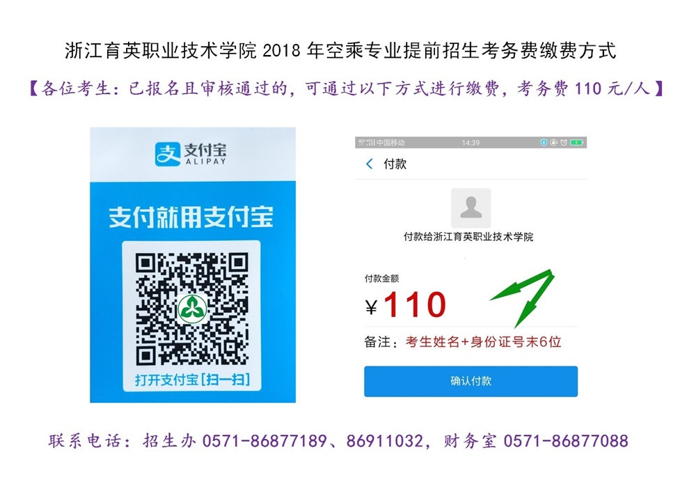 2018年空乘专业提前招生考务费缴费方式