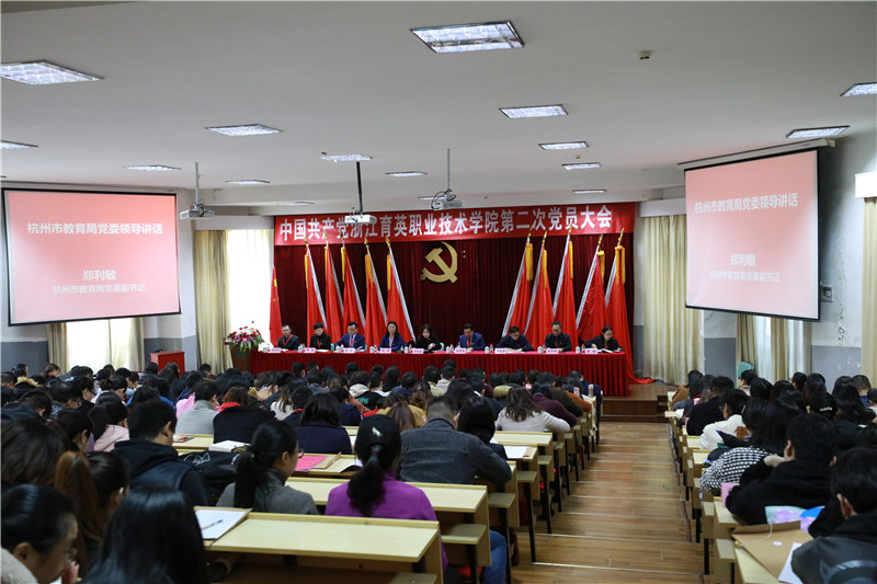 郑利敏代表杭州市教育局党委发表讲话,对本次党员大会的召开表示热烈祝贺,并高度评价了学院党组织发挥的重要作用和党建工作所取得的成绩。5年来,育英学院党委学习贯彻习近平新时代中国特色社会主义思想和党的十九大精神,牢牢把握社会主义办学方向,紧紧围绕立德树人根本任务,加强党的建设,为学院发展提供了坚强有力的政治思想和组织纪律保障,工作成效明显,突出表现在三个方面。第一,党组织的战斗堡垒作用有力。学院党委全面贯彻落实党建工作责任,认真履行全面从严治党和意识形态工作主体责任,出台了一系列文件,加强和改进基层党组织建设,扎实开展了“不忘初心,牢记使命”主题教育,培育了一批党建特色品牌,涌现了党建双强示范点和全国党建工作样板支部。第二,党员的先锋模范作用突出。学院党委持之以恒地做深、做实党员走在前活动,推动广大党员服务学院发展,服务师生成长成才,服务社会进步,涌现出一大批优秀党员。尤其是在服务保障G20杭州峰会期间,学院师生积极贡献,展现了良好形象,赢得社会各界好评。第三,党建工作的政治效能明显。学院党委始终紧扣培养德智体美劳全面发展的社会主义建设者和接班人这一根本任务,推动党建工作和教育教学工作相融合,着力加强思想政治教育工作,不断加强师德师风建设,不断健全三全育人,校园文化建设和精神文明建设迈上了新台阶。