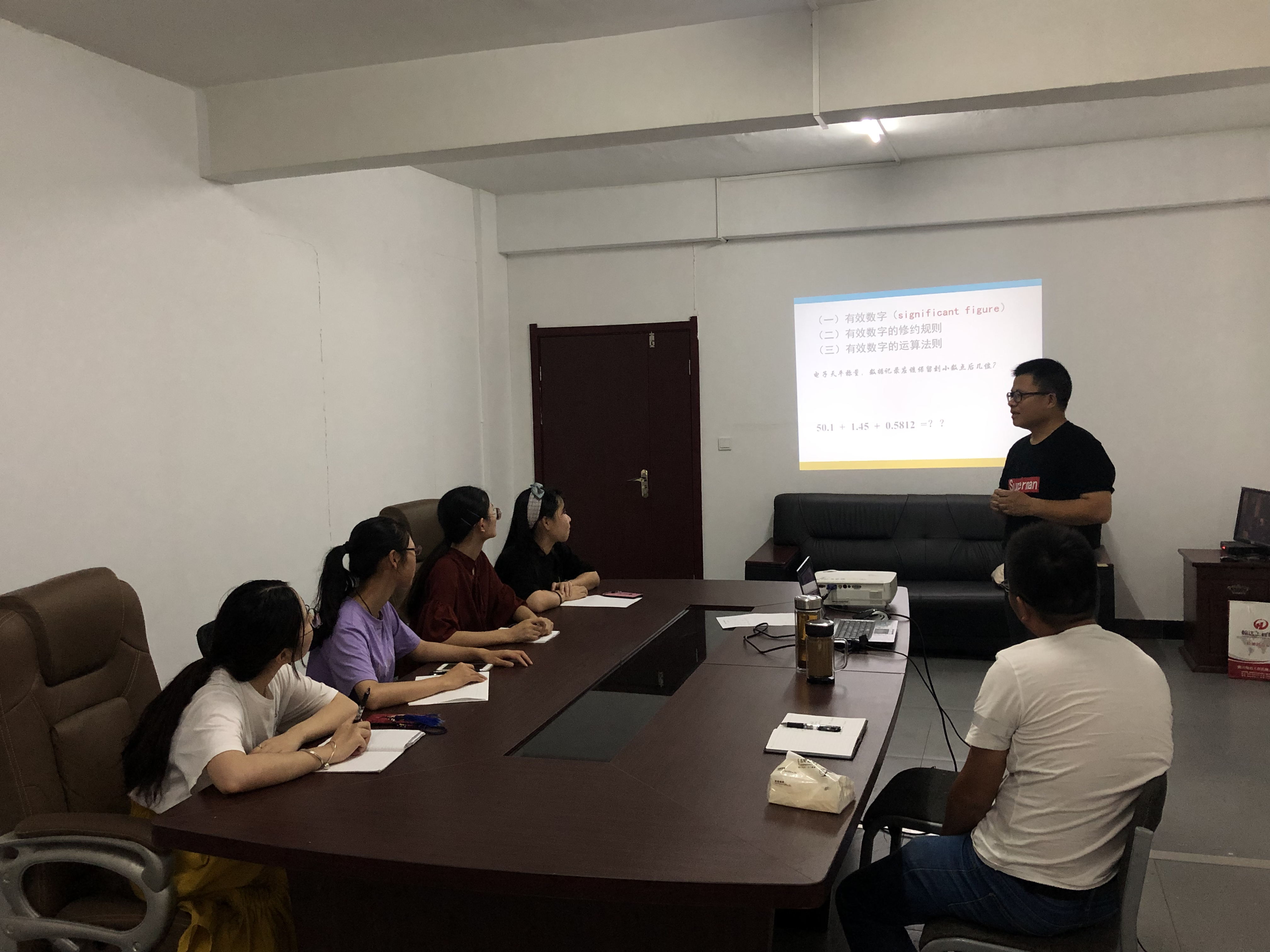 为了加强校企合作,更好的做好对企业技术服务工作,8月1日,信息技术分院吴清盛老师应邀对浙江翰达工程检测有限公司环境检测员工进行了滴定分析与误差处理的培训。