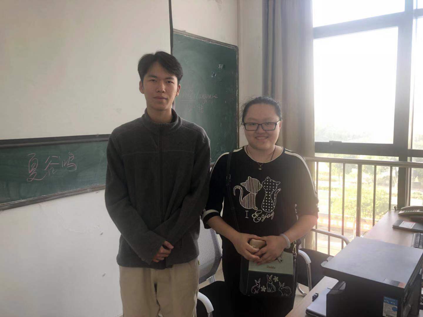 第二站,我来到中沙金座的华道联融企业管理咨询有限公司看望17日语班的杨苗军。杨苗军在公司担任电话销售一职,作为班级中的独行侠,他在工作之后因为实习岗位的缘故,变得跟以往大不一样,沟通能力有了很大的提升。他也十分吃苦耐劳,为了节省通勤的交通费用,每天选择步行30多分钟上下班。