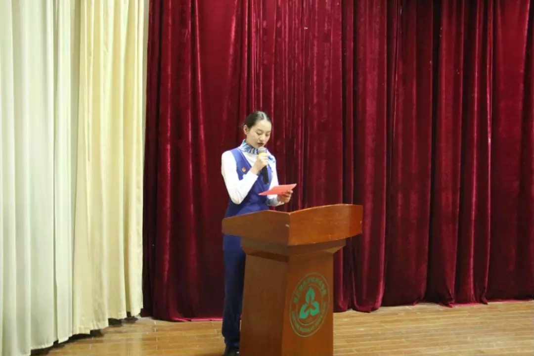 院团委书记助理朱海鹏同学宣读表彰十佳团支书的表彰文件: