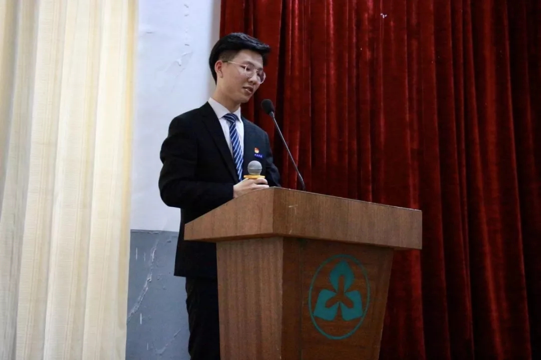 第一位上台的是浙江警官职业学院学生会主席杨鹏学长,杨鹏学长开篇便做了个设问:“学生会干事,代表什么。”“学生干事代表的就是学生会。”