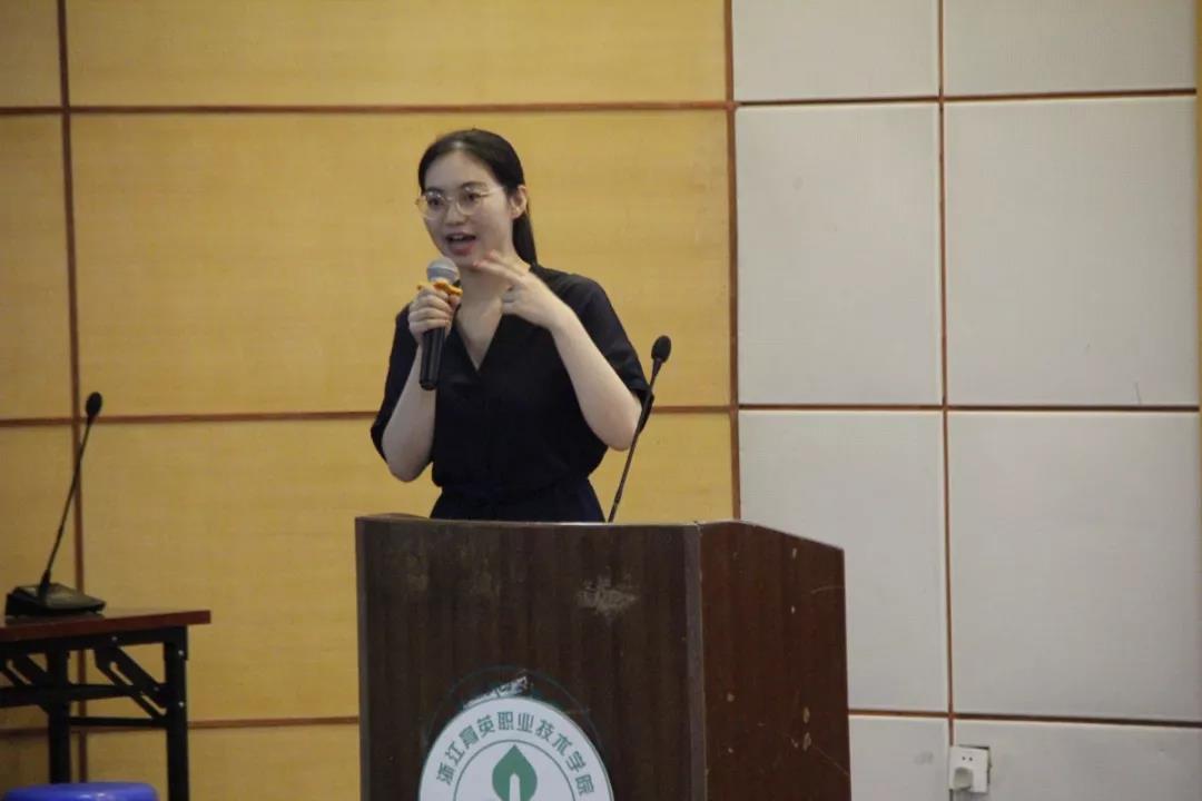 15物管班徐建芬学姐不远千里从金华赶来,为同学们带来了“职场菜鸟的初识”专题讲座,通过自身一年的岗位奋斗和人际关系处理,告诫即将走入社会的同学们不要搬弄是非、 不要过多计较, 要虚心求教,在适当时期和领导沟通,主动参与重大事项,用微笑解决问题,要建立良好的职业职责。