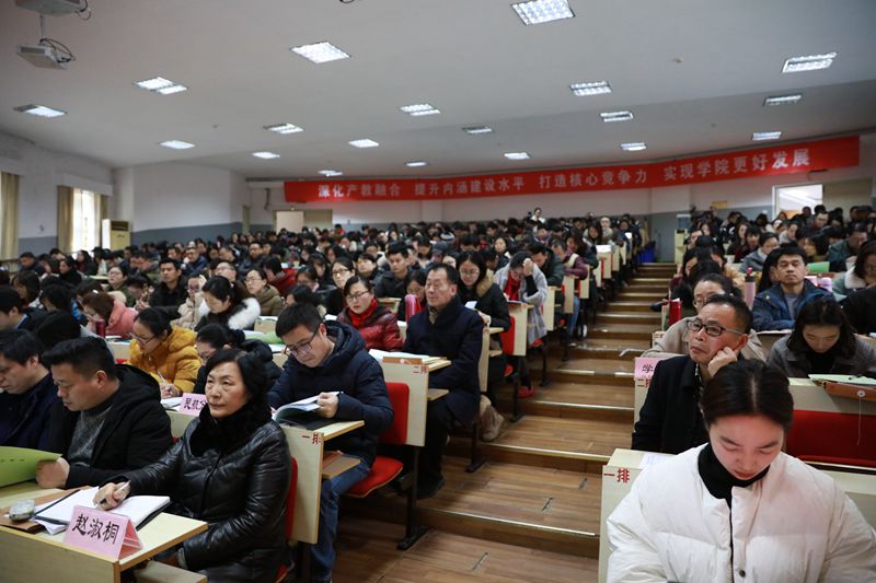 2019年1月21-22日,学院召开第八次教学工作会议在一号报告厅隆重举行。会议主题是“推进产教深度融合,提升内涵建设水平,实现学院更好发展”。学院院长盛健,党委书记、常务副院长王锡耀,副院长黄爱平,党委副书记、副院长谢鑫出席,全体教职工参加会议。