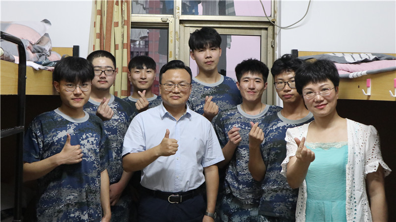 在学生宿舍1号楼,王锡耀院长亲切地询问同学们来自哪里,这几天生活是否适应,是否有需要帮忙解决的问题,并与同学们交流对大学生活的规划,鼓励同学们尽快完成从中学到大学的过渡,适应新的学习生活环境,与身边的同学处理好关系、团结互助、共同进步。