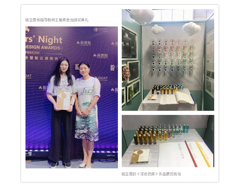 创意设计分院16展示专业钱亚雯、16环艺专业朱楚能入选杭州“设计新秀50强”,两组作品《深夜药房》、《土楼现代构建设计》于9月19日-23日在杭州文博会主场馆白马湖会展中心展出。
