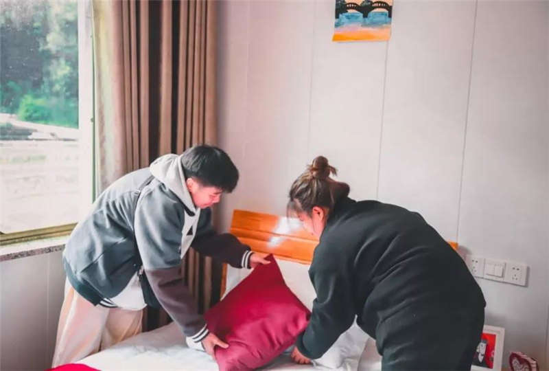 在活动中,队员们用自己的实际行动为乡村民宿发展添砖加瓦,响应 “绿水青山就是金山银山”的乡村发展口号,为下梓村建设成美丽和谐、顺应时代发展的现代村庄贡献力量。