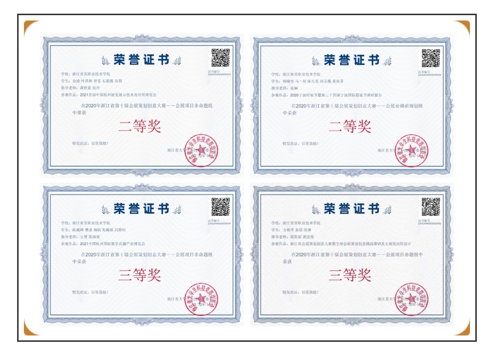 获奖成绩:2020年浙江省第十届会展策划创意大赛--会展项目命题组三等奖