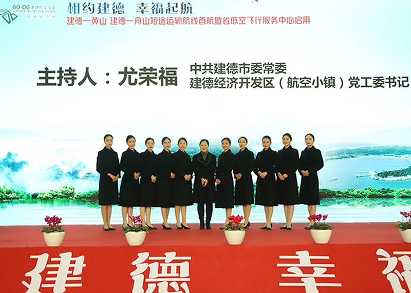 “相约建德 幸福起航”建德-黄山 建德-舟山短途运输航线首航暨浙江省低空飞行服务中心启用仪式在各方的共同努力下,于2019年12月31日在建德千岛湖通用机场5号机库和建德航空小镇省低空飞行服务中心成功举行。