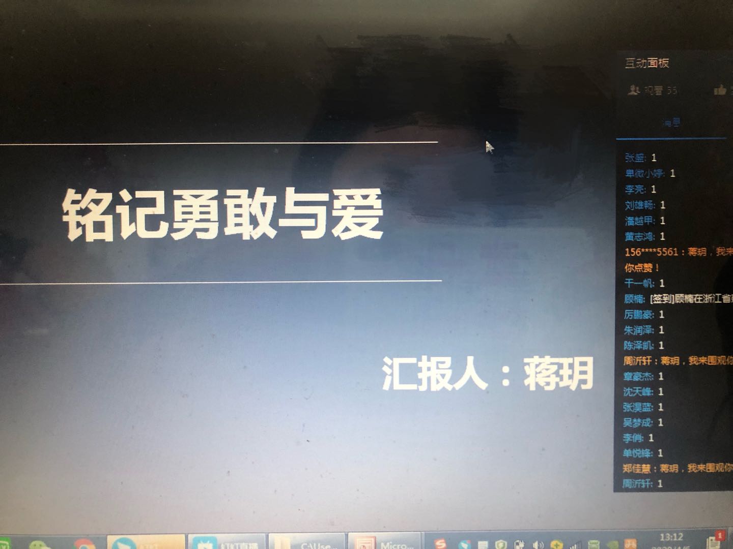 会上,辅导员蒋玥老师通过疫情纪录片与大家一起很好地回顾了疫情期间让人感动的那些人与事。大家也都深有感触。其次,针对于之前的各个方面进行了总结,总结了同学们开学至今网课学习的整体情况,将任课老师的一些建议和要求及时反馈给大家,希望继续完成好网课阶段的学习任务。强化同学们的责任意识,引导同学们做好每日一报,注意个人身体健康和行踪动态,同时提醒学生不麻痹大意,做到不聚集,不扎堆。严格遵守学校安排,绝不私自提前返校。结合特殊阶段,叮嘱同学们做好防范意识,杜绝网络诈骗,提高个人的人身安全和财务安全意识。