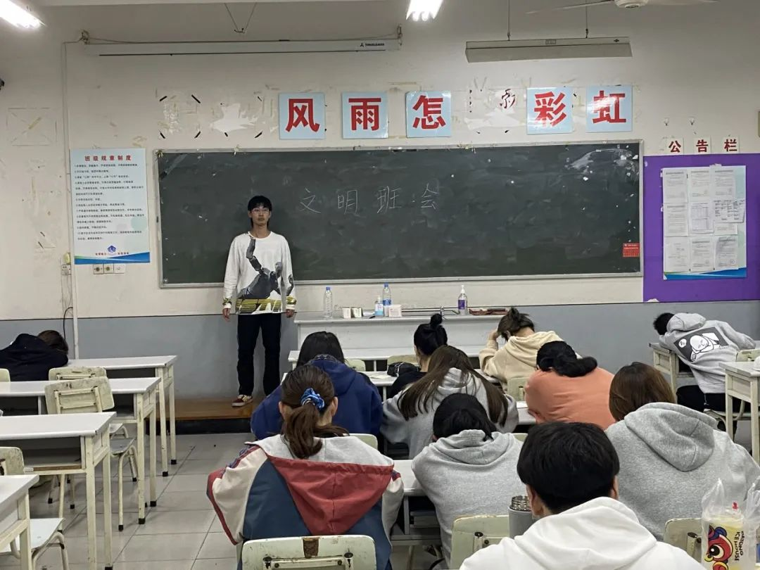 近期,班级开展了“文明在我,全员参与”的主题班会。班会内容从社会主义核心价值观展开,强调了文明对培养担当民族复兴大任的时代新人的重要性,以及对国民教育、精神文明创建、精神文化产品创作生产传播的引领作用。