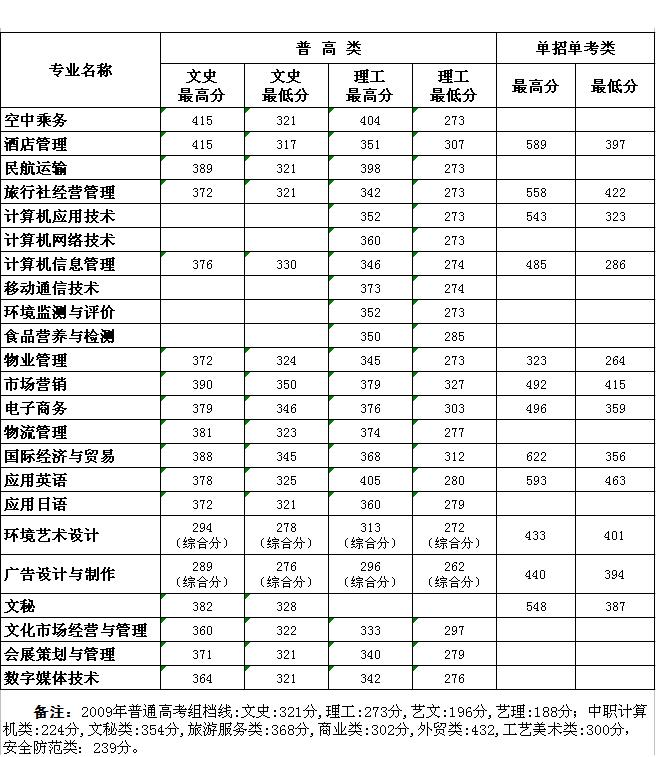 我院2009年省内各专业录取新生最高分、最低分