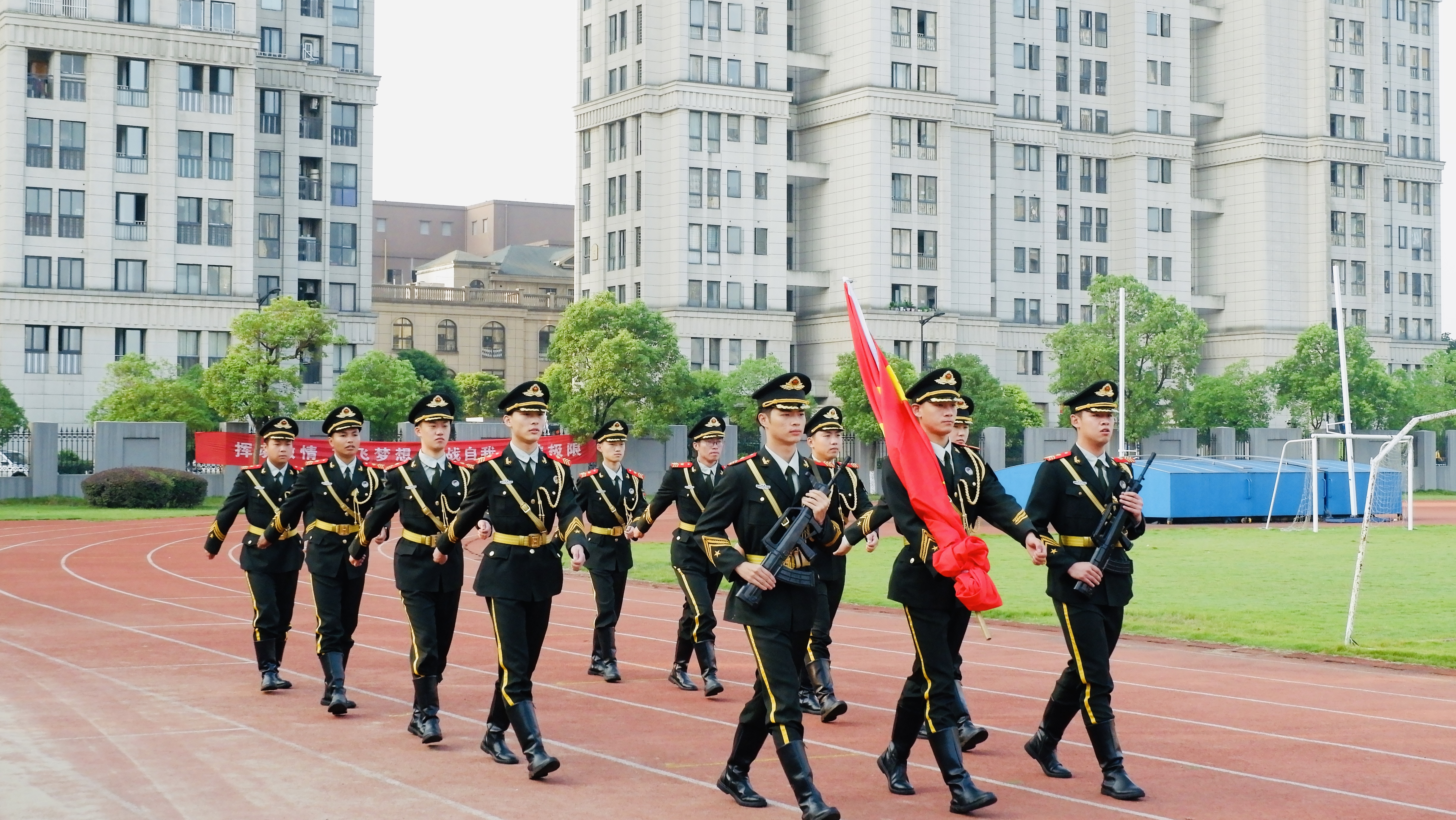 2020年10月1日上午7点整,在学院操场国旗台下,我们举行了“传承红色基因 ,续写时代华章”升旗仪式。伴随着《义勇军进行曲》,“荣伍社”国旗护卫队,精神抖擞、整齐划一,迈着铿锵有力的步伐,护卫着五星红旗入场,升旗手振臂一挥,这就是你们的荣耀!
