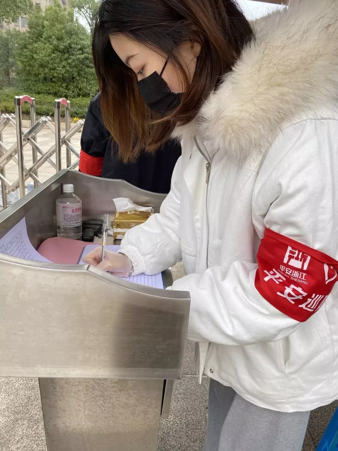 竺芯伊说:我负责的任务是在小区门口站岗,对进入小区人员的基本情况进行登记、测量体温,并对体温异常者及时上报。疫情当前,全国各地党员干部都战斗在防控疫情的一线,用坚守诠释了共产党人的初心与使命。而我作为一名预备党员,有责任、有义务为社区做些力所能及的事。用自己的实际行动向党组织靠拢,在抗击疫情工作上尽一份绵薄之力。
