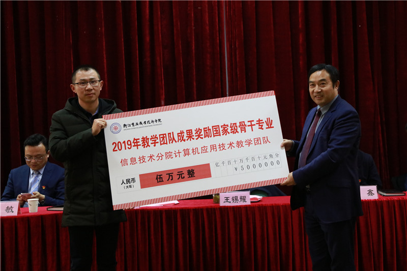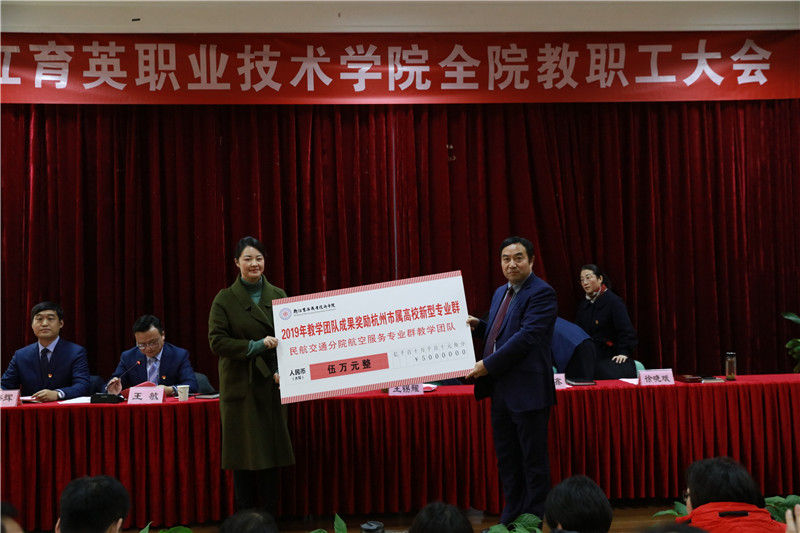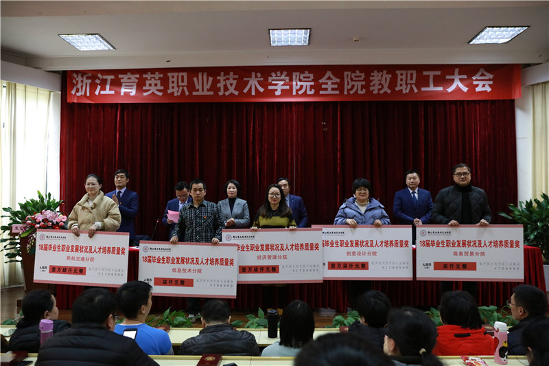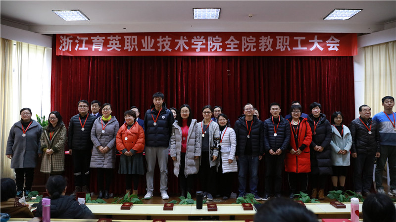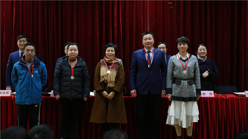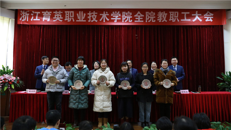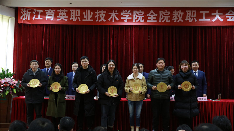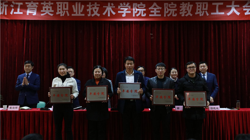 谢鑫宣读2019年平安分院、教师获奖及重要教学项目立项单位等表彰决定,王敏宣读在学院工作5年以上的教职工表彰决定,学院领导分别为获奖教职工颁奖。