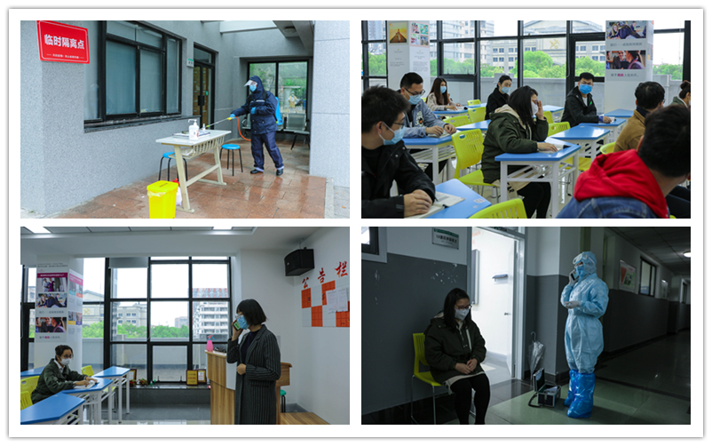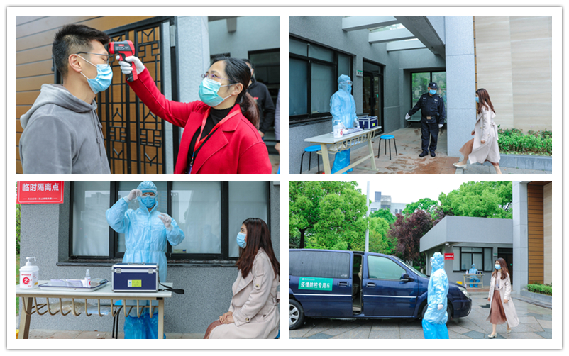 医保中心复测学生体温,了解健康码和行踪情况后,联系专车送学生去医院发热门诊检测,检测后送集中隔离点隔离。