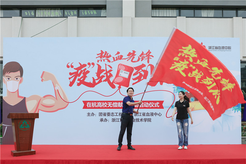 5月21日上午,“热血先锋 疫战到底”高校献血活动启动仪式在育英学院举行。浙江省血液中心副主任徐健,学院党委副书记、副院长谢鑫出席活动。徐健代表省血液中心为学院送上感谢信,感谢校方在关键时刻伸出援手,为疫情期间高校献血做出带头示范作用。浙江省血液中心团委书记周丽为学院授“热血先锋、‘疫’战到底”流动红旗。本次活动,根据疫情防控的要求,无偿献血分批预约进行,共计305名师生参与无偿献血,累计献血95080 毫升。