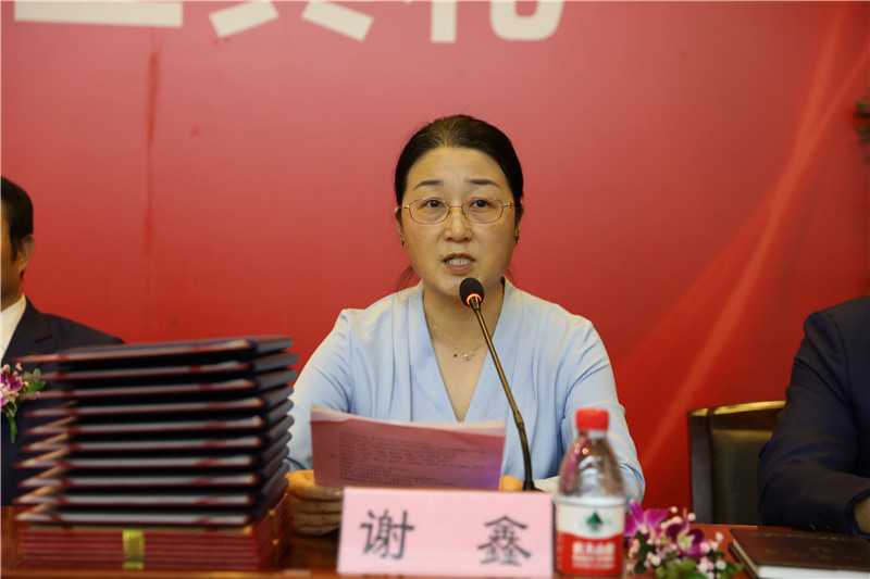 全体毕业生在谢鑫的主持下,举行了毕业礼,毕业生代表向教职工代表、家长代表、企业代表献花。