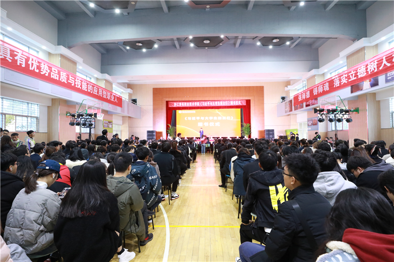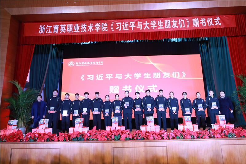 会上举行了《习近平与大学生朋友们》书籍赠送仪式。学院向全体教职工及在校生赠送该书。各党总支、直属党支部负责人,第十七届浙江省大学生程序设计竞赛、第十一届蓝桥杯全国软件和信息技术专业人才大赛全国总决赛获奖者,学院田径队、篮球队、游泳队、大学生艺术团戏剧团等在各项大赛中获奖的学生及各班班长上台领取赠书。会后,每个在校学生都领到了该书。