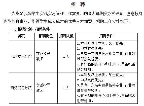 诚聘实践指导教师2名