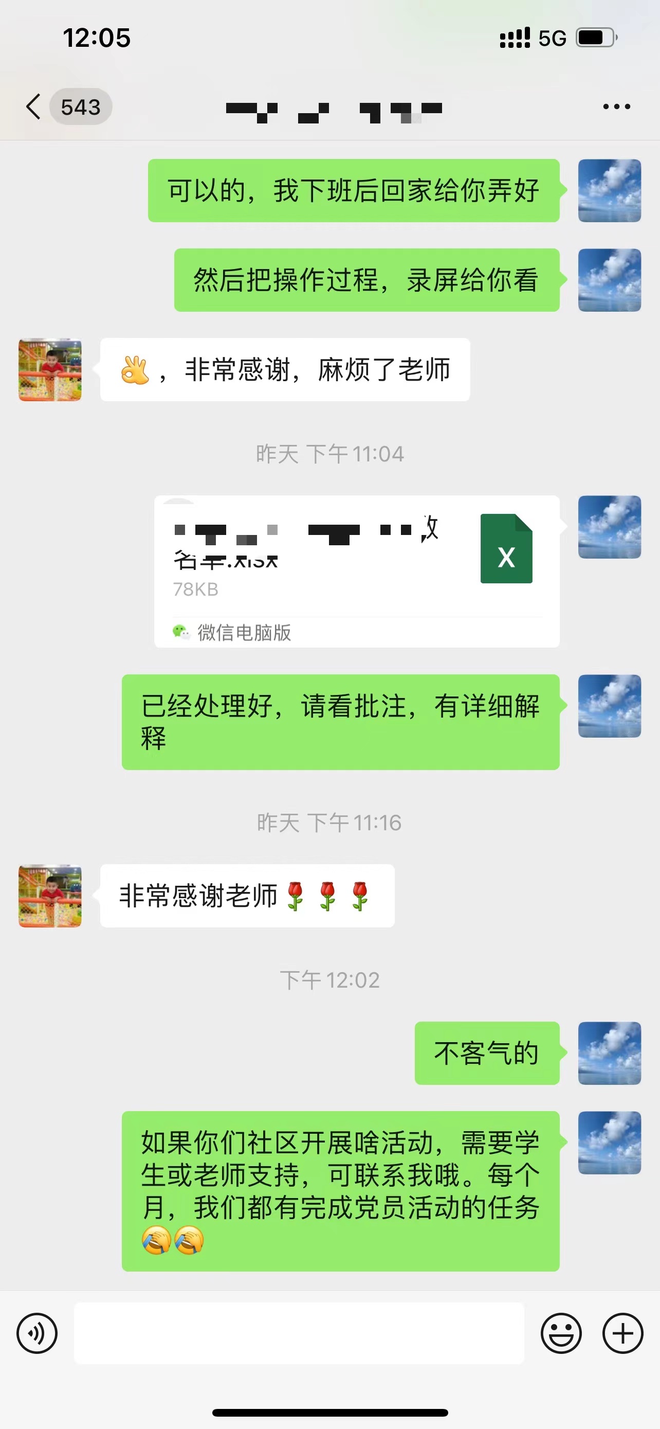 除了现场教学外,学员们与何老师互加微信,继续提供技术支撑。当社工们遇到难以解决的问题,何老师会将处理过程录屏,告知解决之道,授人以鱼不如授人以渔。好几次,已深夜11点,何老师还在帮助社工们处理数据。