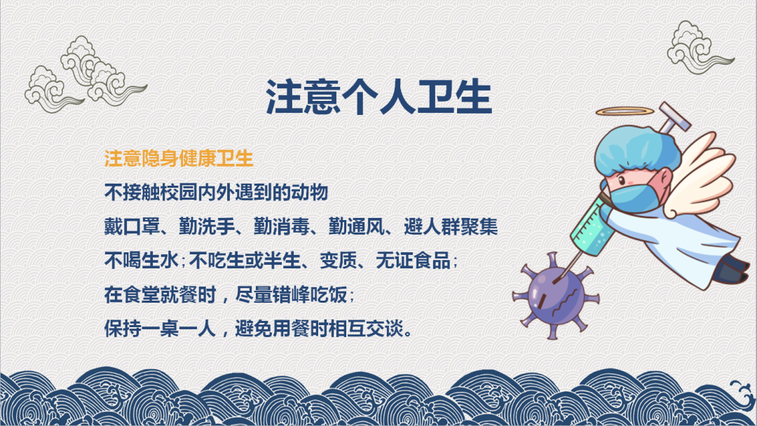 今年4月是全国第33个爱国卫生月,为贯彻落实习近平总书记关于深入开展爱国卫生运动的重要指示,深化健康卫生教育,进一步巩固发展国家卫生城市的创建成果,筑牢新冠疫情防控卫生屏障,消除校园卫生隐患,共享文明健康、绿色环保的生活,为此,我们发出倡议: