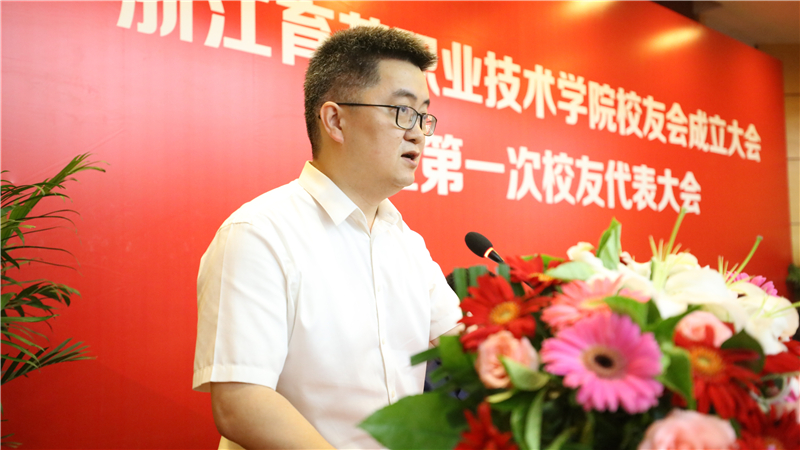 校友会常务副会长、杭州麦得好电气有限公司执行董事孙照发言。他说,在母校学习期间得到学院领导、老师的谆谆教诲和悉心关爱,多年来一直激励着他不断前行,至今仍受益。他代表校友会第一届理事会表态:将努力做好牵头人、联络员、宣传员和服务员的工作,积极壮大校友会规模,健全校友网络和组织,希望越来越多的校友持续关注、支持校友会成长和母校发展,实现母校与校友的合作共赢。