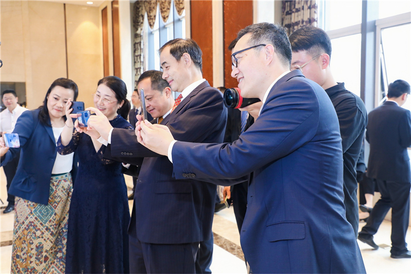 五国使节到育英学院直播团队负责的场地观看时,纷纷伸出大拇指,夸赞主播的专业、细致、到位。外交部亚洲司大使王福康更是两次返回泰国水果直播场地,观看同学们的直播,拿出手机拍摄,并与我院学生主播们合影。在谢鑫书记陪同下,泰国、缅甸、老挝三国的使节走到镜头前,与主播们一起推介水果。