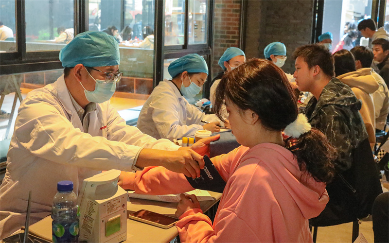 浙江省血液中心副主任潘凌凌、陈旭东,献血服务一科主任赵小雅,学院党委书记、副院长谢鑫等领导一同慰问参与无偿献血的师生,为育英师生的大爱精神点赞。
