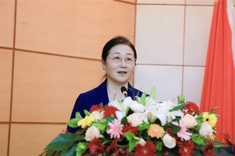 谢鑫发表讲话。她代表学校党委向全校广大师生党员致以节日的问候,向受到表彰的先进集体和优秀个人表示热烈祝贺。她回顾101年来中国共产党的光辉历史和伟大成就,总结学校在一代代共产党员和育英人努力下取得的党建和思想政治工作方面的成绩。