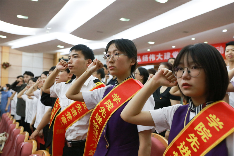 与会新党员在组织部长郑国军带领下宣誓,全体党员重温入党誓词。