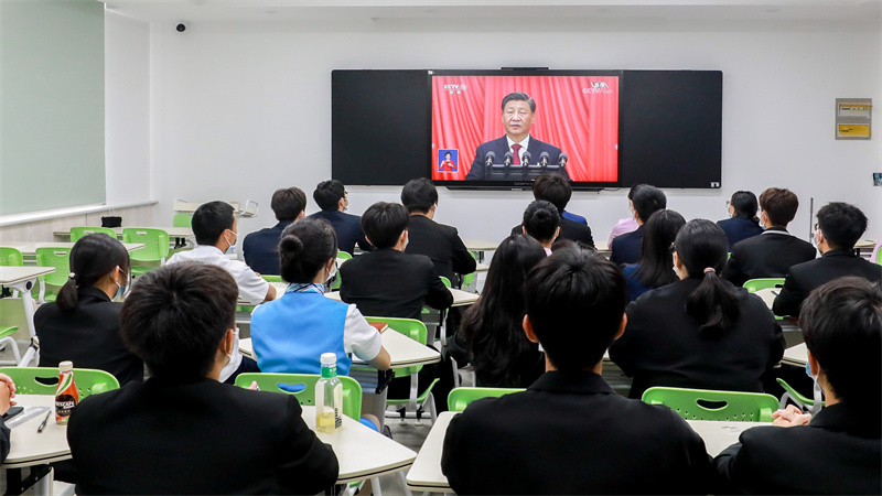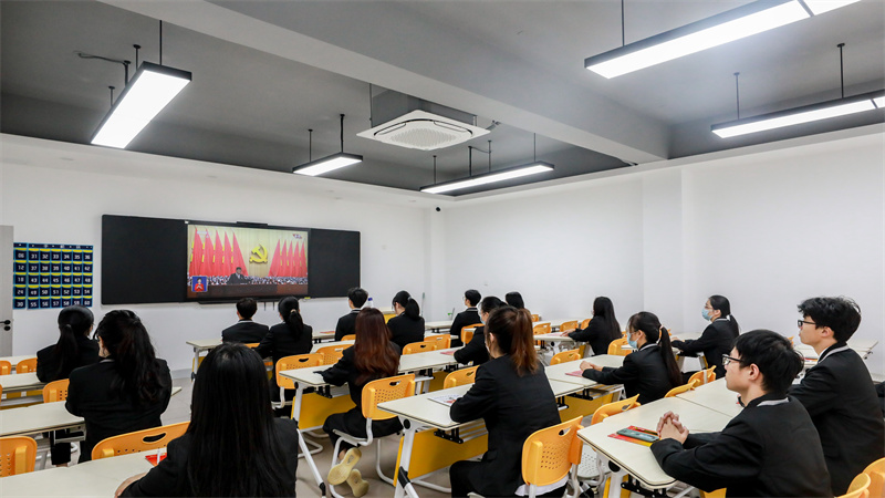 育英学院师生集中收看党的二十大开幕会盛况