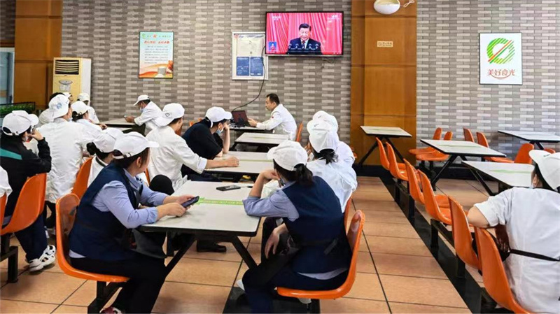 学生餐厅员工收看开幕会盛况