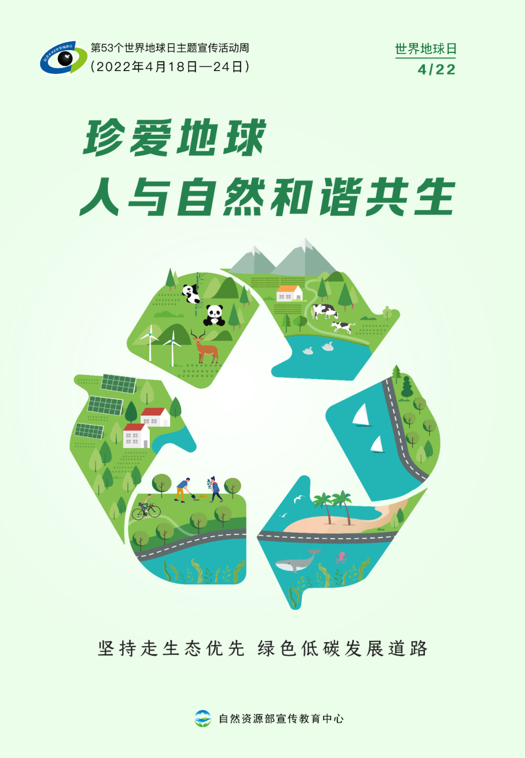 2022年4月22日是第53个世界地球日。4月18日至4月24日,是世界地球日主题宣传活动周。今年的宣传主题是“珍爱地球 人与自然和谐共生”。