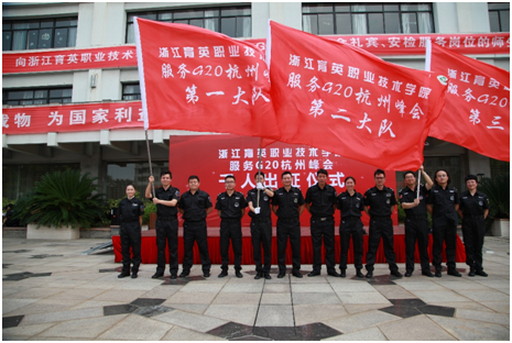 2016年,G20峰会在杭州召开。学校2323名师生承担礼宾和安检任务,分布在88个站点和场馆工作一线。面对点多面广、情况复杂、任务艰巨的实际,学校党委形成以“最严的要求、最高的标准、最快的速度、最实的作风、最佳的效果”的共识完成服务保障任务,专门印发《关于服务G20杭州峰会进一步发挥党组织战斗堡垒和党员先锋模范作用的通知》,从加强党组织保障入手,发挥思想政治引领作用,并积极倡导在党员教师中开展“提高认识走在前、艰巨任务走在前、责任担当走在前、关爱学生走在前、精细服务走在前”等六个方面“走在前”;在学生党员和入党积极分子中开展“参与态度走在前、岗位技能走在前、微笑服务走在前、关键岗位走在前、为学校争取荣誉走在前”等五个方面“走在前”。历时43天的服务保障中,学校党委共成立3个临时党总支和18个临时党支部,横向到边、纵向到底,确保每一个点位、每一名人员都纳入支部网格化管理体系。服务超过750万人次,安检过包量231万件,查获8535件违禁品,实现了万无一失的工作目标。参与公安检查站的安检同学受到中央政法委书记孟建柱的赞扬,2名学生参与的绕城高速公安检查站荣立集体三等功。学校参与G20服务保障工作的事迹得到了时任杭州市副市长陈红英的批示肯定。