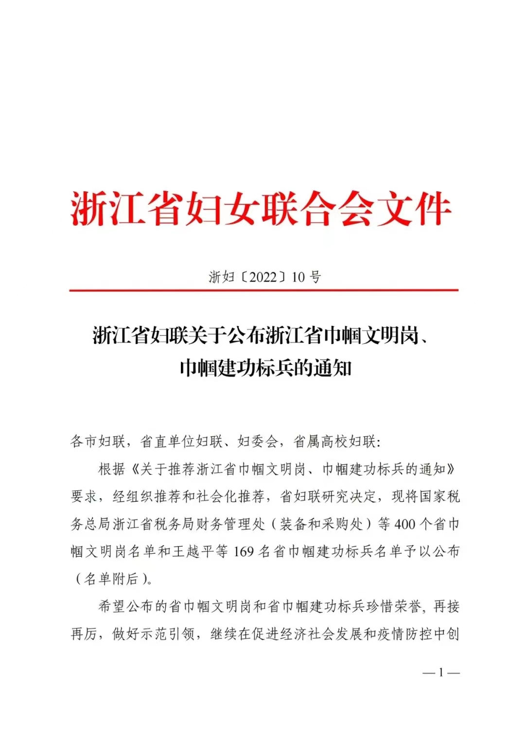近日,浙江省妇联下发了《浙江省妇联关于公布浙江省巾帼文明岗、巾帼建功标兵的通知》,我院城市轨道交通运营管理教研室荣获“浙江省巾帼文明岗”称号。