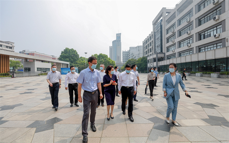 学校专家组组长丁金昌,常务副校长黄爱平,党委书记、副校长谢鑫,副校长王敏陪同检查并汇报工作。