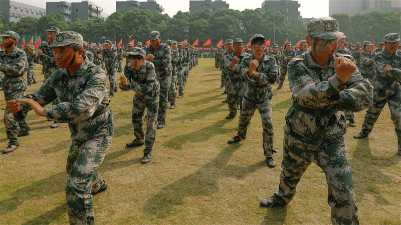 王敏作军训总结。他说,军训是同学们进入大学的第一堂课。在这10多天军训中,同学们在具有优良作风和传统的73021部队教官指导下,认真学习,严格操练,圆满完成军训各项任务。通过军训,同学们进一步巩固和提升了国防意识,增强了国防观念和国防素质,强健了体魄和精神,磨砺了意志品质,增强了团队意识和集体主义精神。通过入学教育,同学们更加了解学校的发展历史、专业人才培养模式、图书资源和学习条件,以及党团组织、大学生社团等方面情况,为后期的专业学习打下良好基础。在接下来的学习生活中,希望同学们一是要牢记军人精神品质,不断提高自身综合素质。要以军训为基础,学习军人精神品质,锻炼和提升各方面能力和素养。二是要学习军人精神,树立青春报国志向。作为新时代青年,生逢盛世,必须树立报国志向,青春心向党,奋斗正当时。三是要把军训教育成果转化为个人实际行动。希望大家坚定信念,把个人的理想和梦想融入全面建设社会主义现代化强国实践中,努力为中华民族复兴铺路架桥,为伟大祖国建设添砖加瓦!